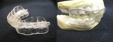 治療には、スリープスプリントという寝るときに口の中に装着(マウスピース)使用します。